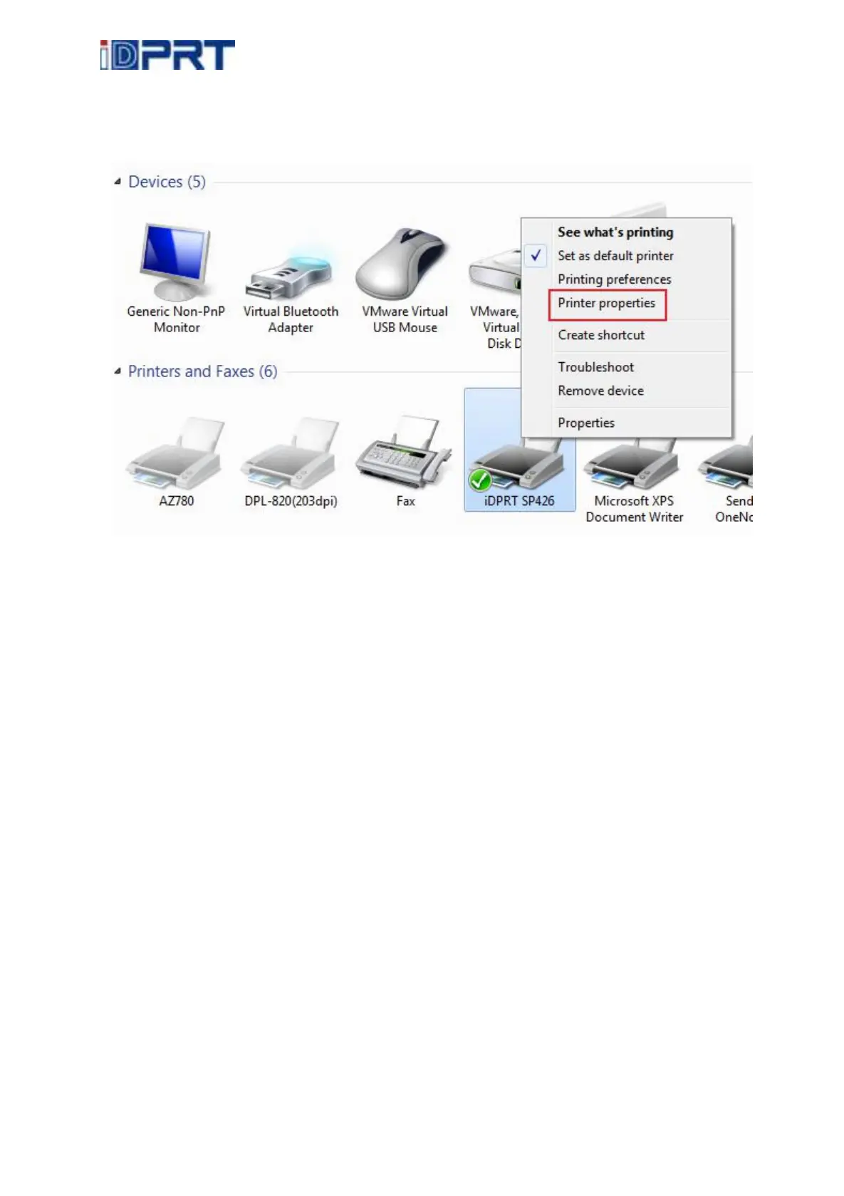 1.Click “Start “Devices and Printers”. Right click the icon and choose “Printer properties”.