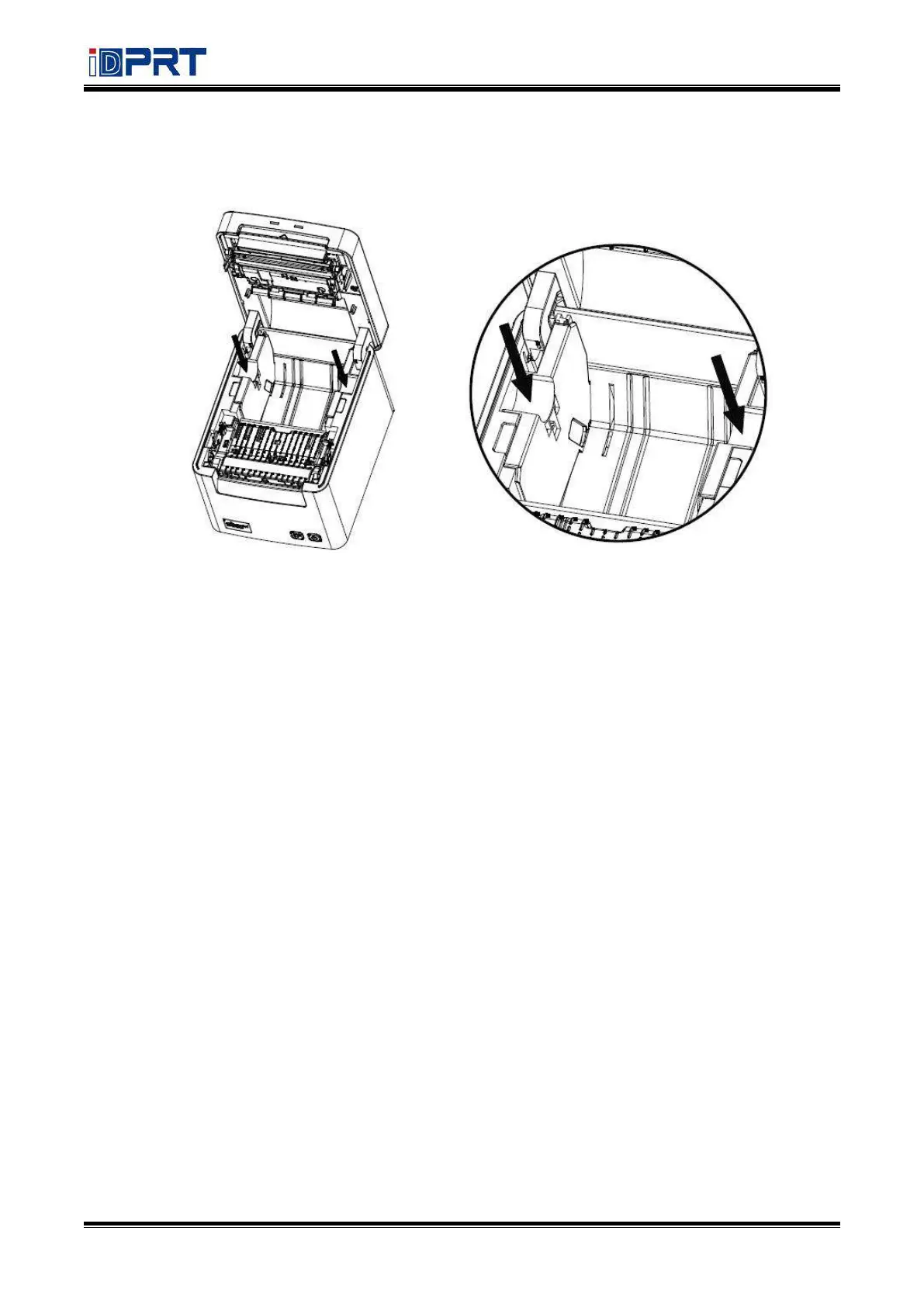 2) When using 79.5mm(width) roll paper, insert the paper guide to each side.