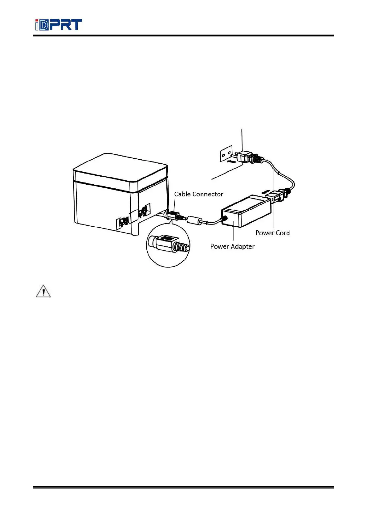 of the power adapter to the power connector at the rear of the printer.