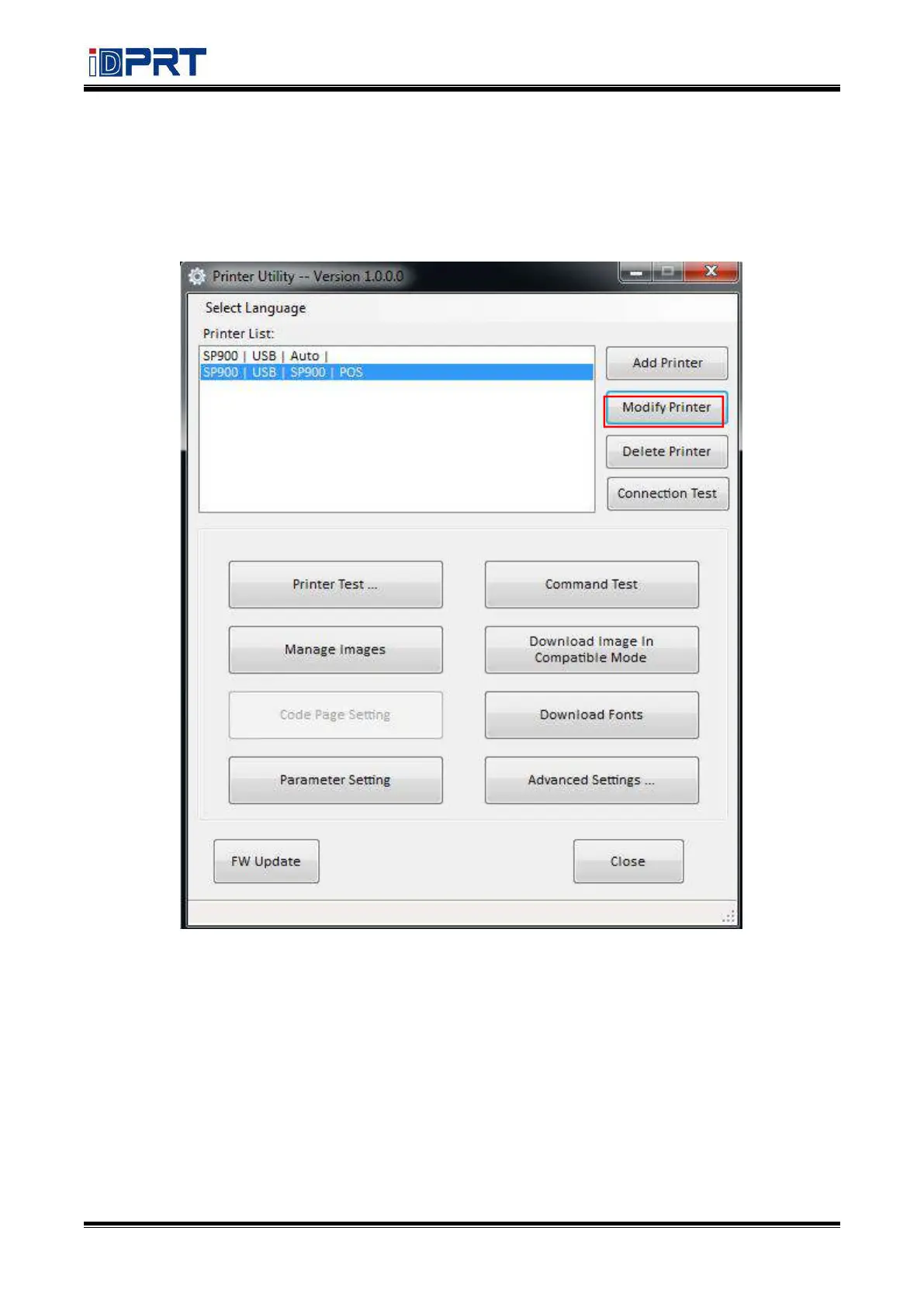 1) Choose the printer you want to modify in the list. Click Modify Printer.