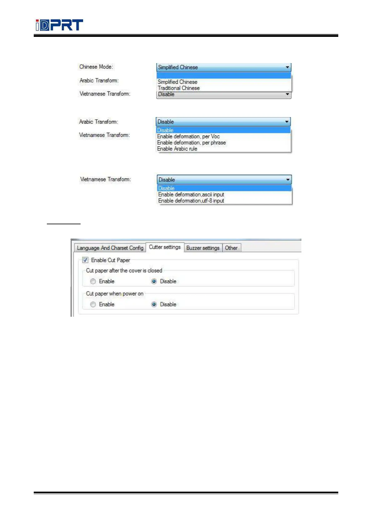 Enable or disable “Cut paper after the cover is closed” / “Cut paper when power on”.