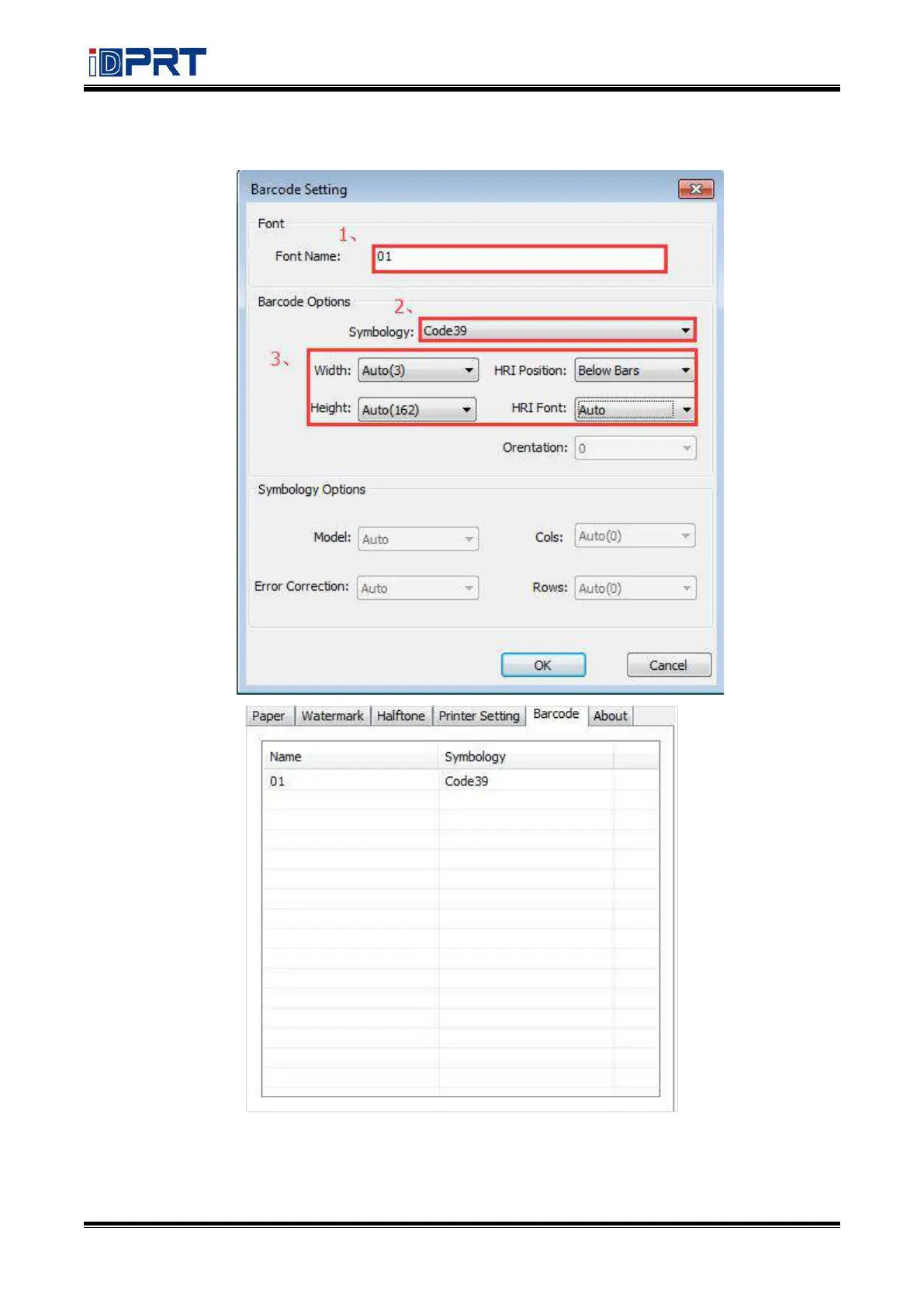 · Set the “Font Name” and the “Barcode Option”.