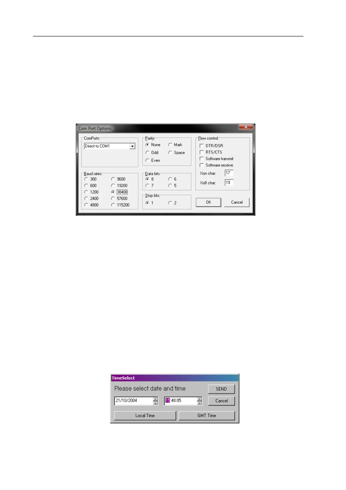 This function sets up probe time and date. It is possible to select the new probe time among: GMT, local