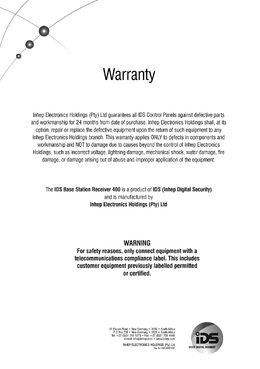 IDS Base Station Receiver 400 700-179-02B Issued January 2009 76