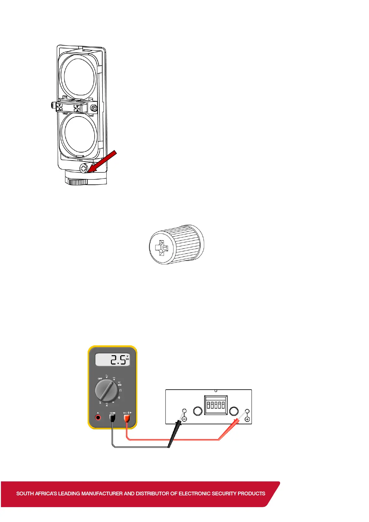 Connect a multimeter, set to DC Voltage, to the Voltage Monitor Jack. Make fine