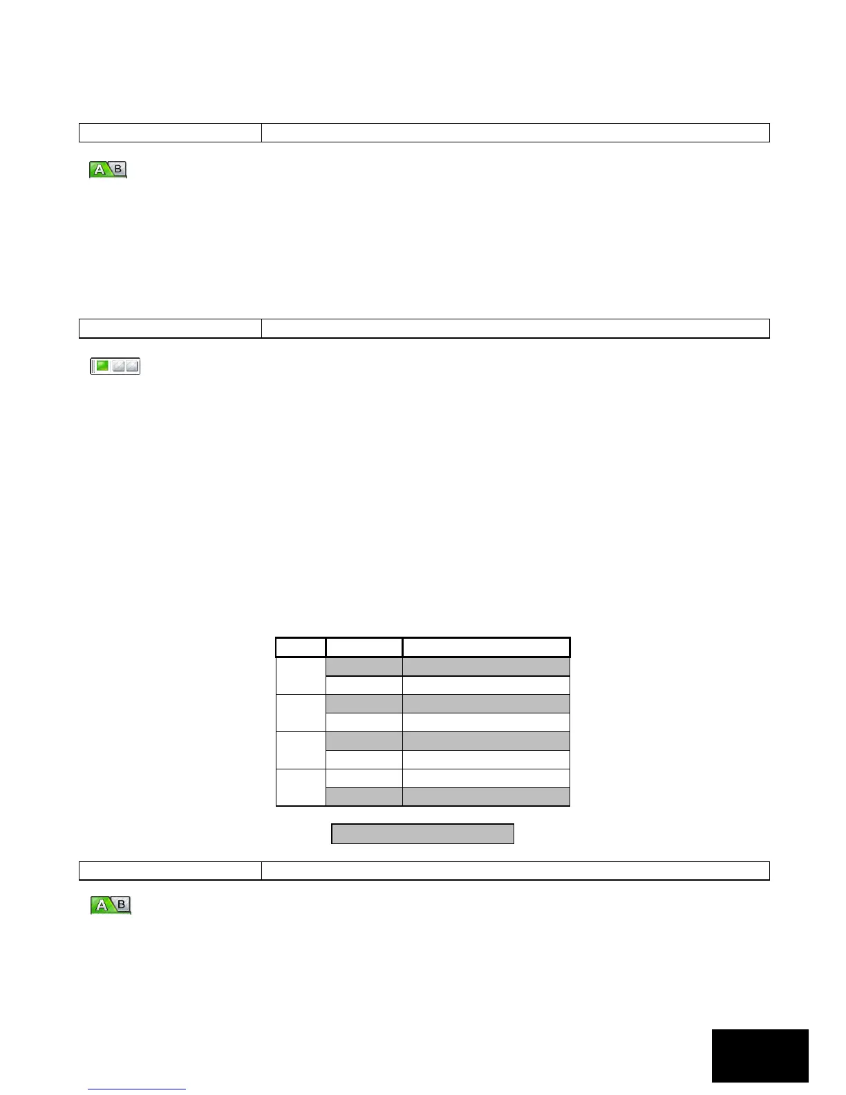 Default values are shaded