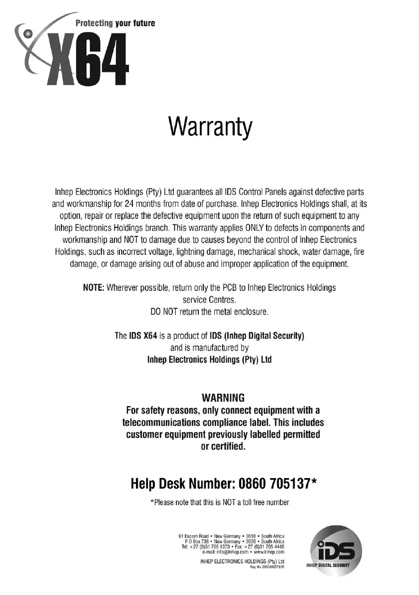 IDS X64 Quick Programming Guide 700-398-03A Issued August 2010