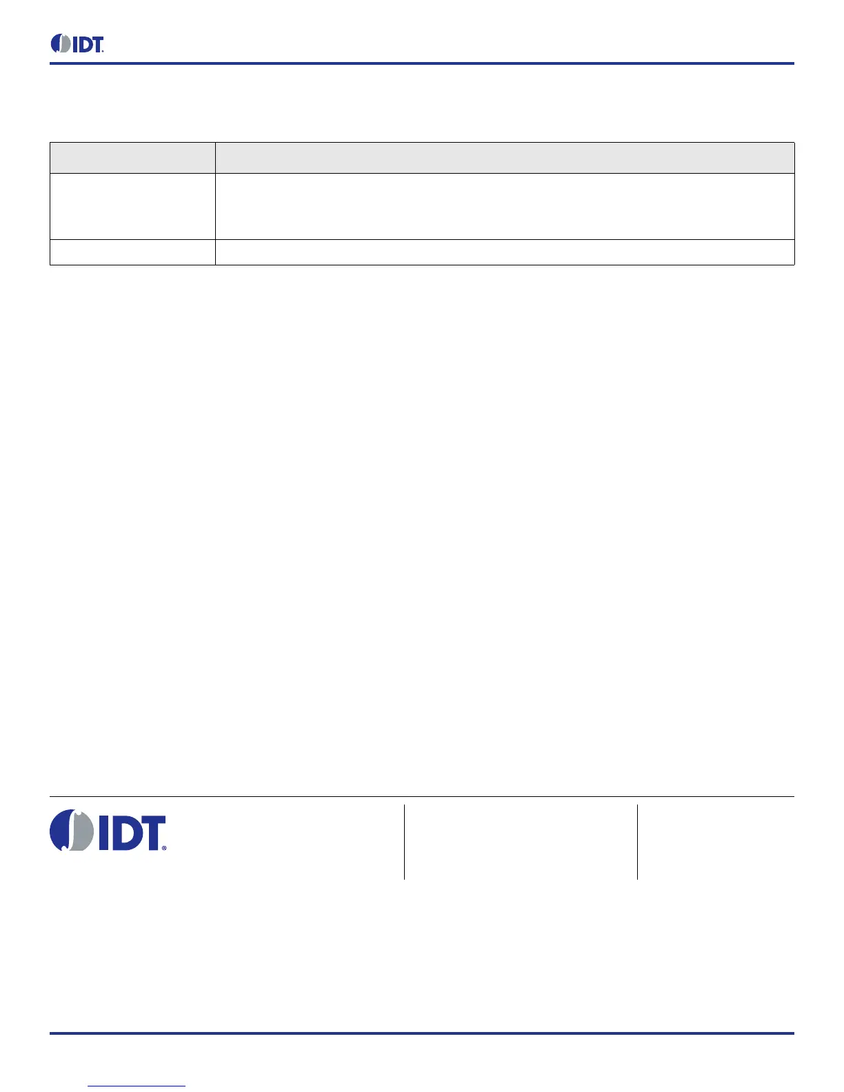 of IDT's products for any particular purpose, an implied warranty of merchantability, or non-infringement of the intellectual property rights of others. This document is presented only as a guide and does not