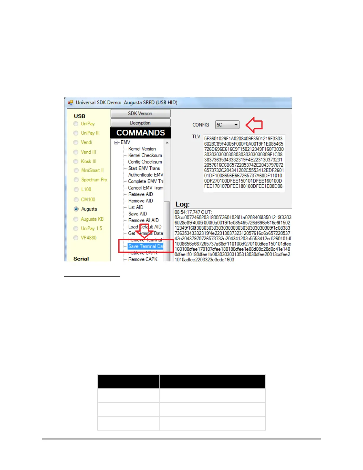 2. Use the Save Terminal Configuration command in the Universal Demo to set the values of