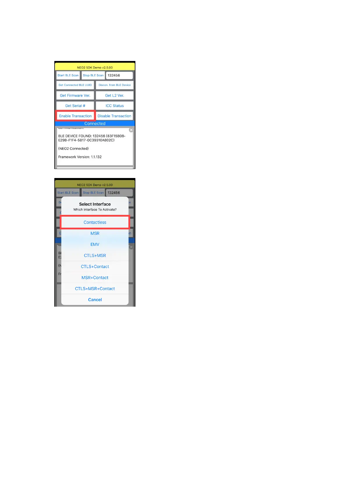1. Tap Enable Transaction.