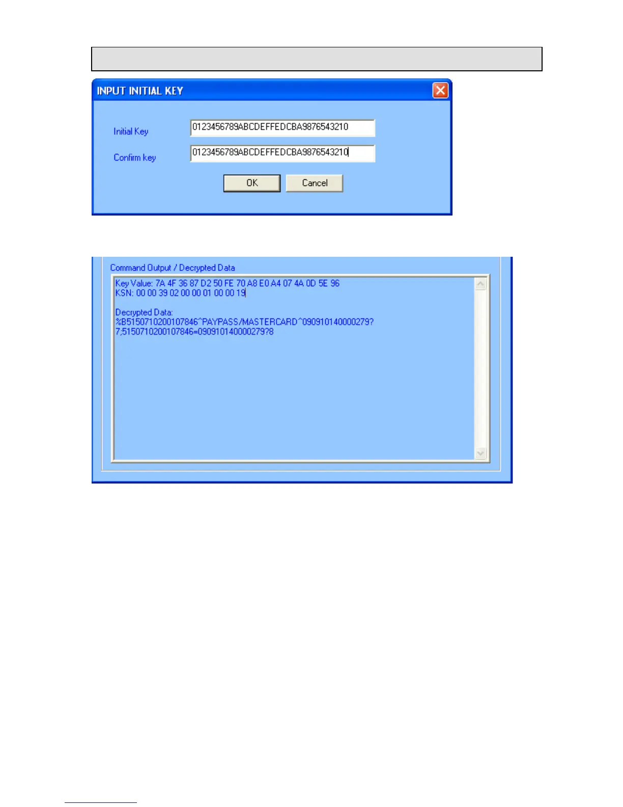The Key Value, KSN and Decrypted Data will be shown in the command output/