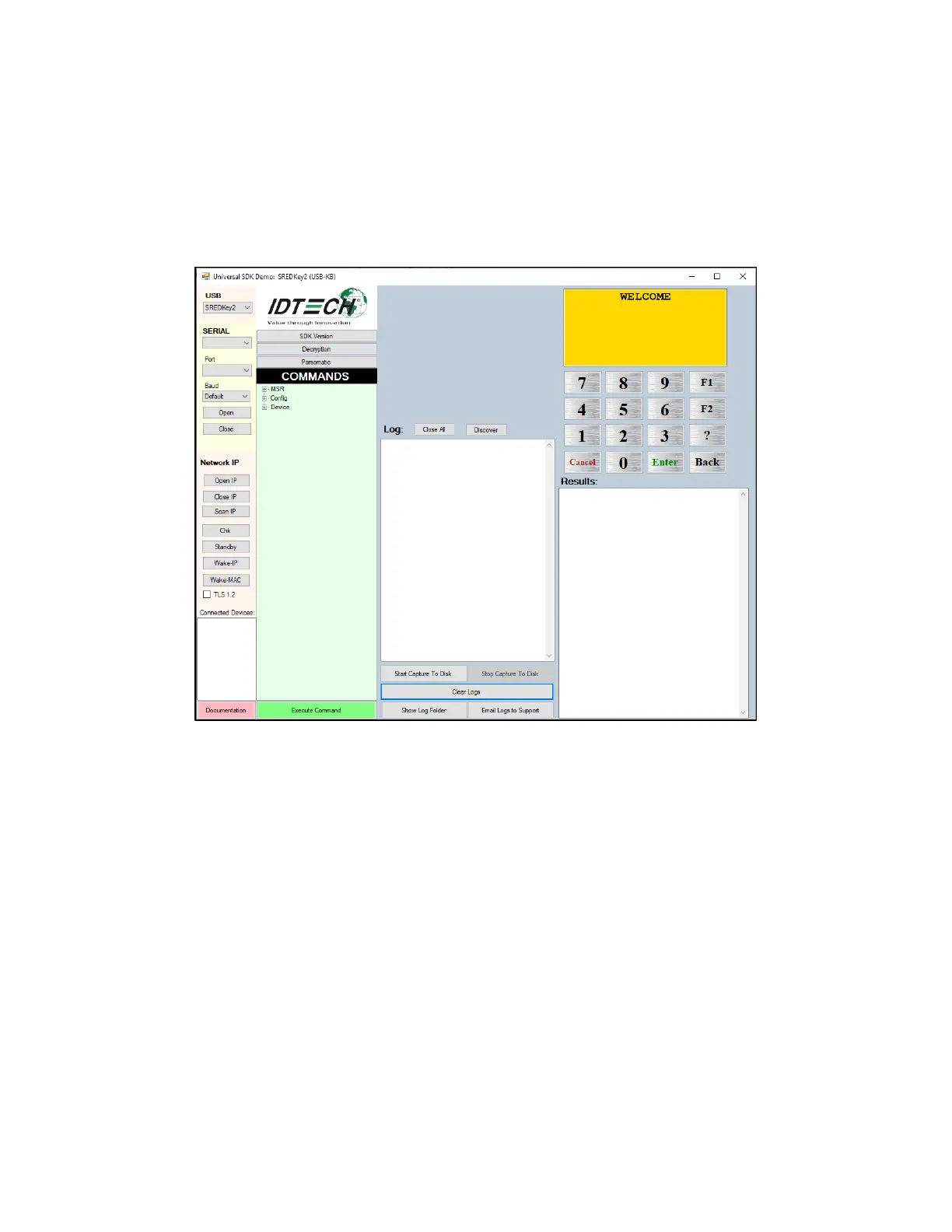 The Universal SDK Demo application is available to demonstrate SREDKey 2 MSR and Keypad Data