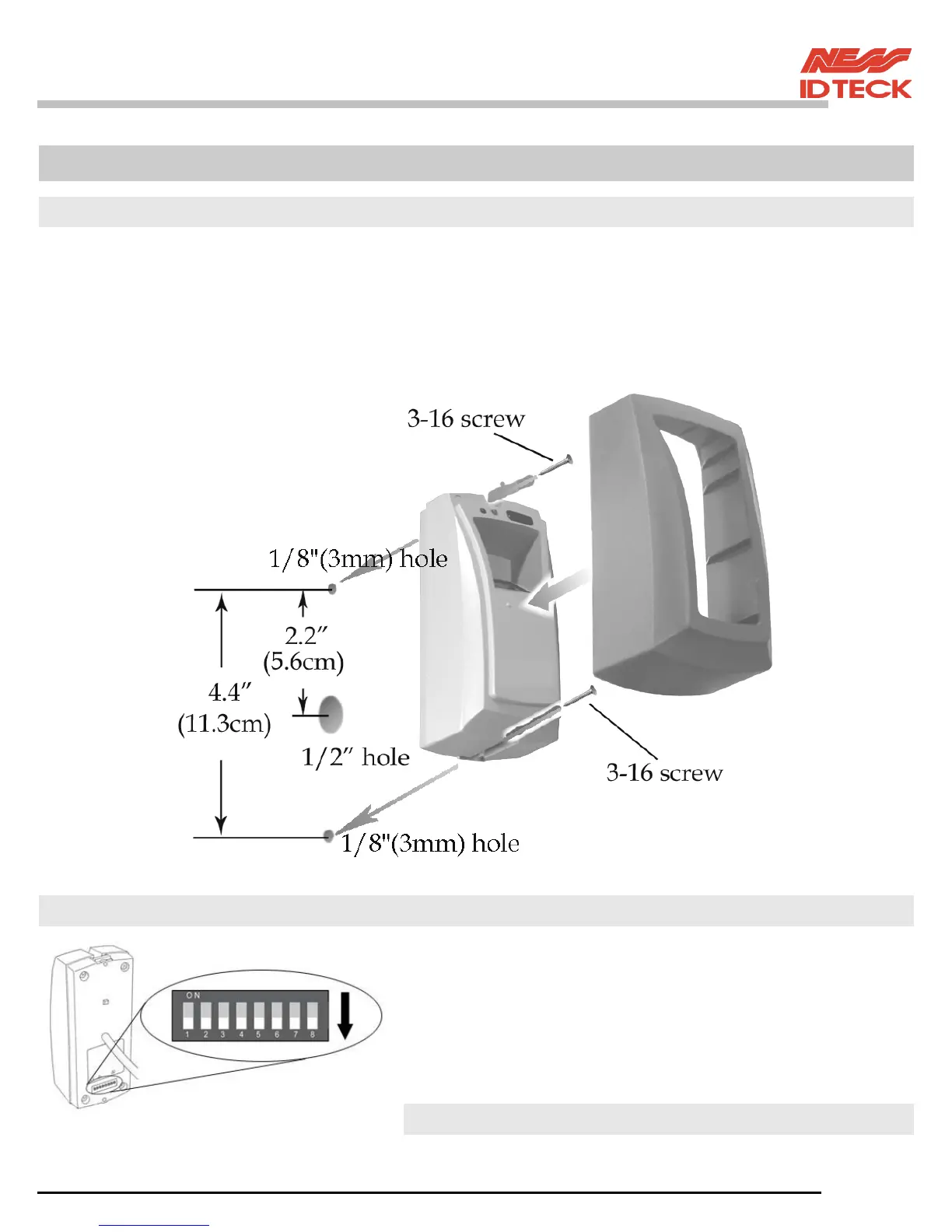 the reader cable 2.2"(56mm) apart from the top hole.