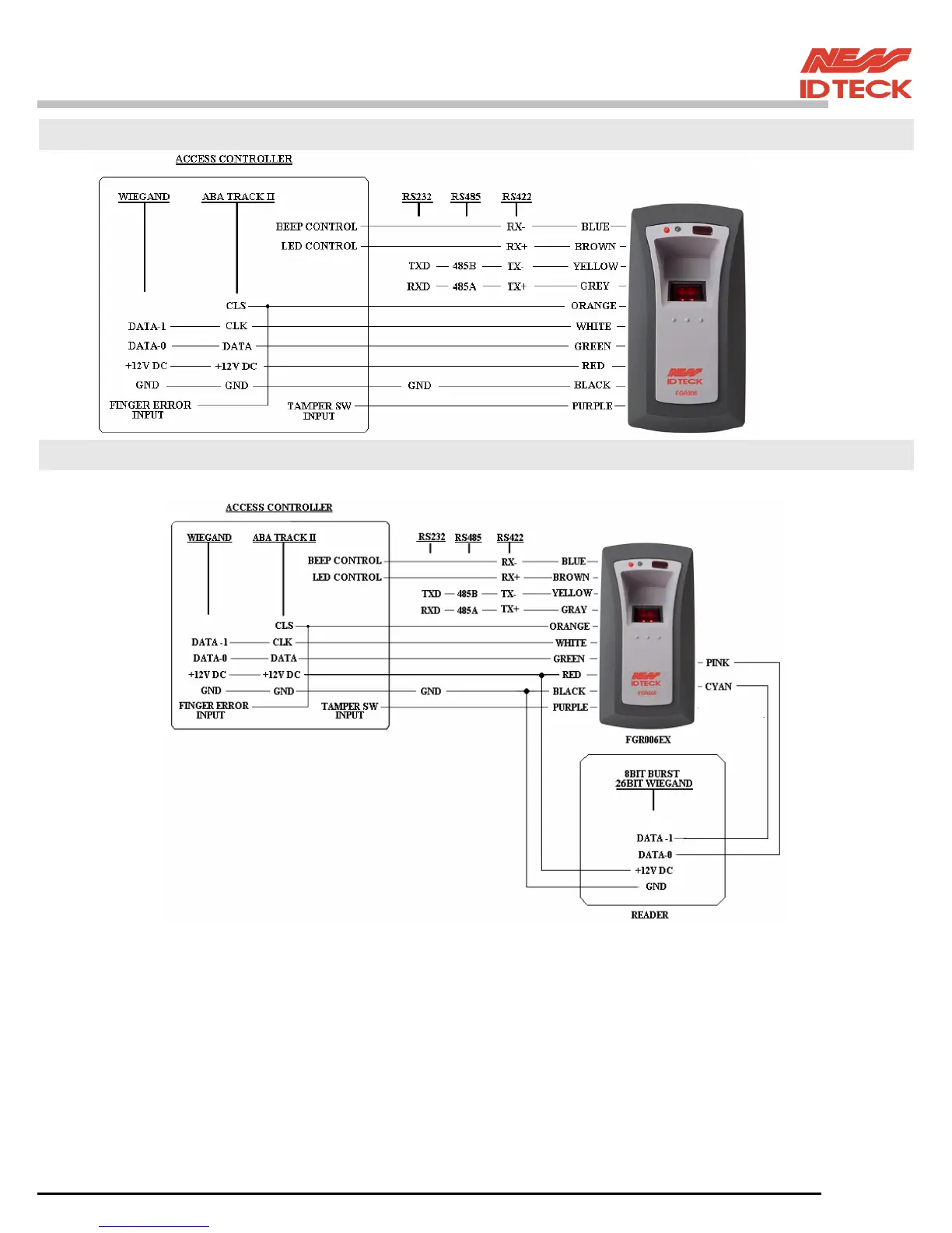 IDTECK FGR006 - Wire Connection of FGR006; Wire Connection of FGR006 EX
