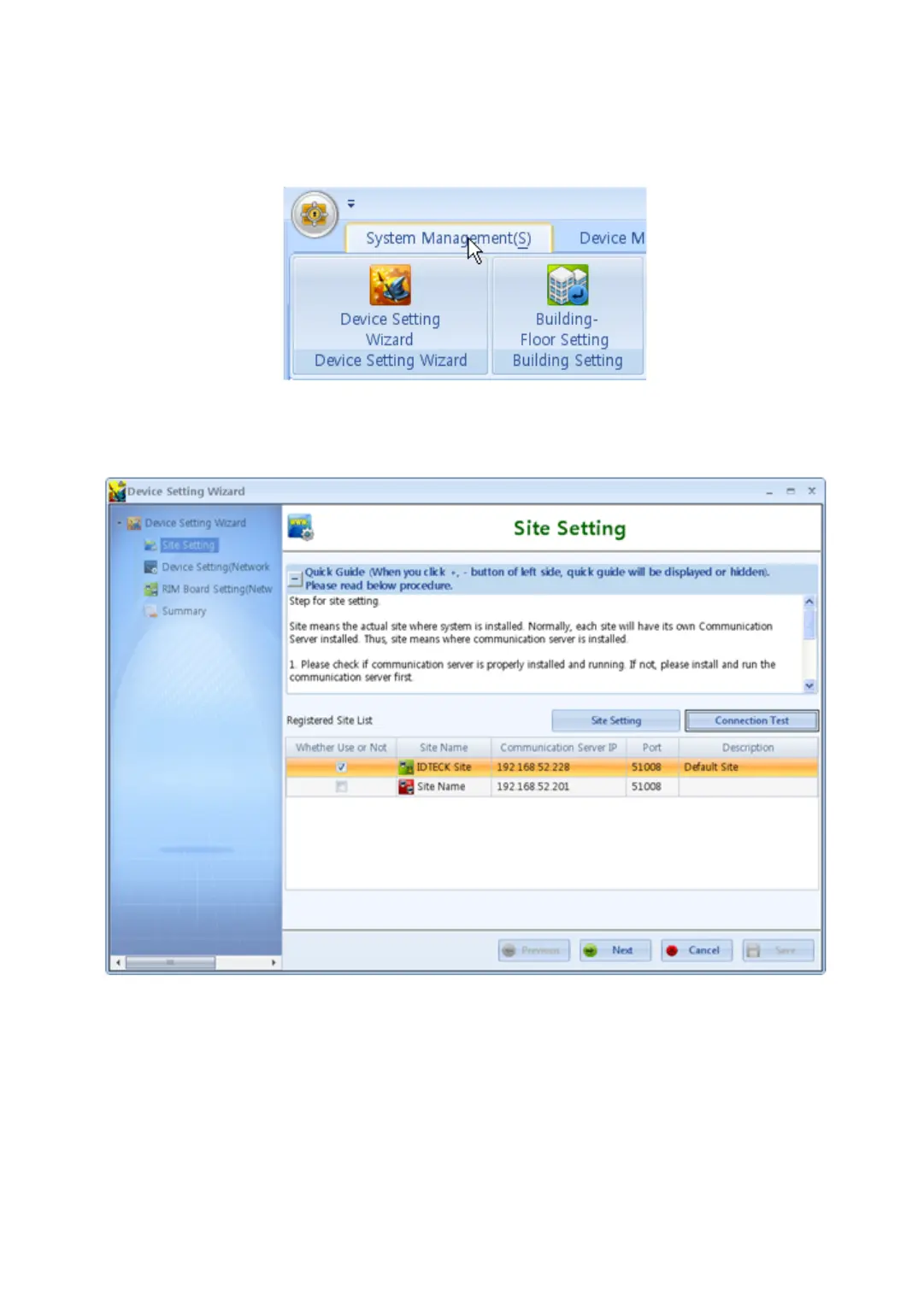 192.168.52.10 for ‘Communication Server IP’. Input the 51008 (defualt values) for ‘Port