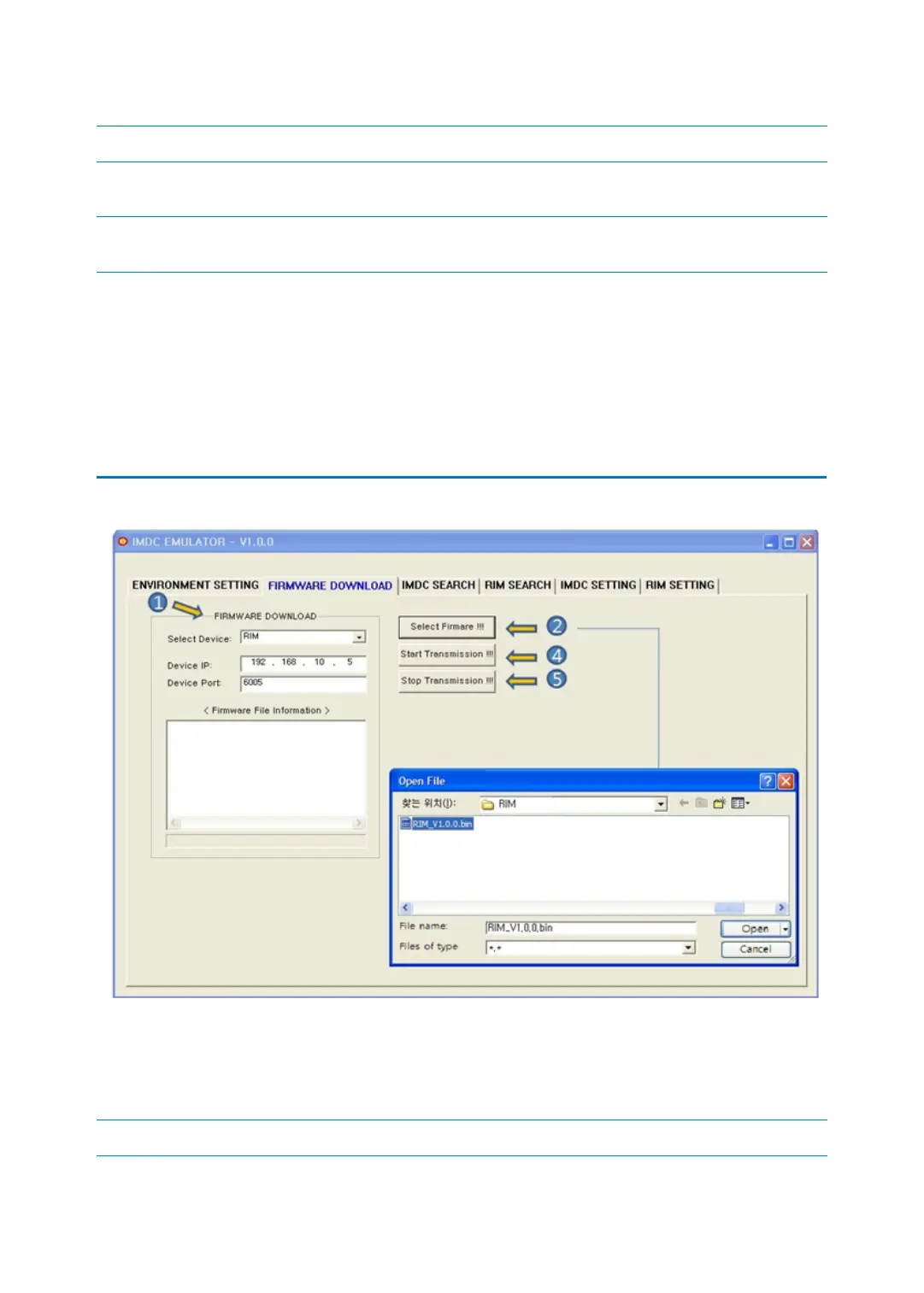 1. Select the device to transmit firmware. Select one between iMDC-MAIN and iMDC-RIM.