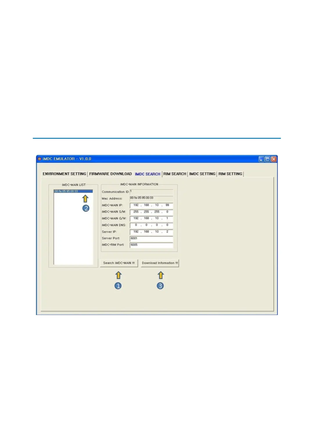 the same network. Searched iMDC-RIM’s MAC Address is displayed on the iMDC-RIM LI
