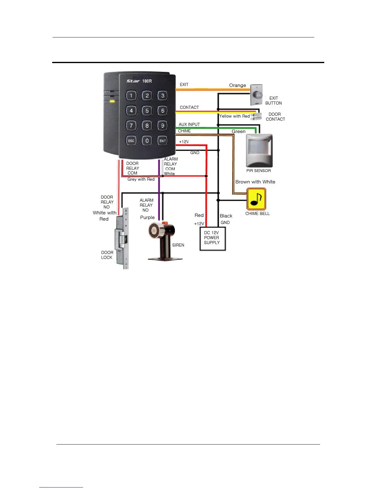 - Connect Door RELAY (COM), Grey with Red stripe wire to DC +12V (be sure that the existing
