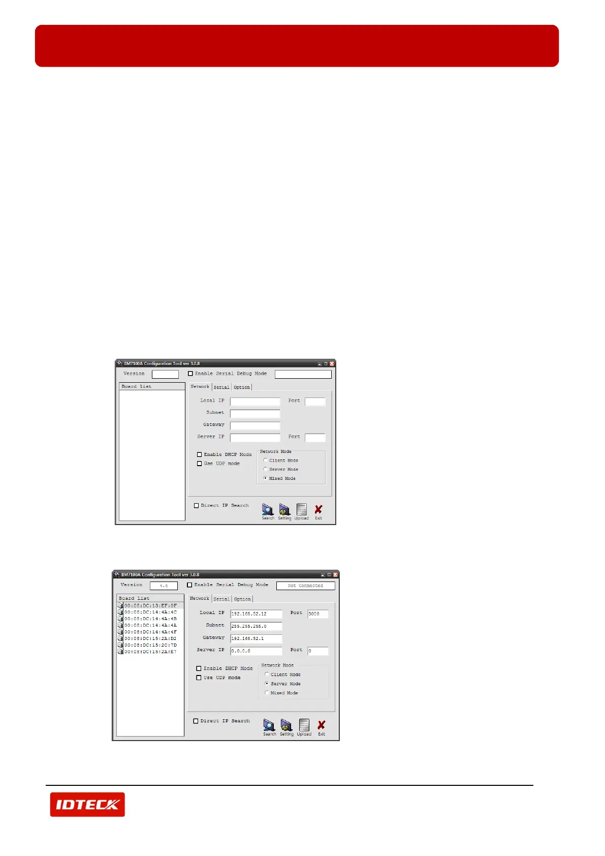 Module(IIM7100) setting program(IIM100A Configuration Tool) to set information for Network and Serial