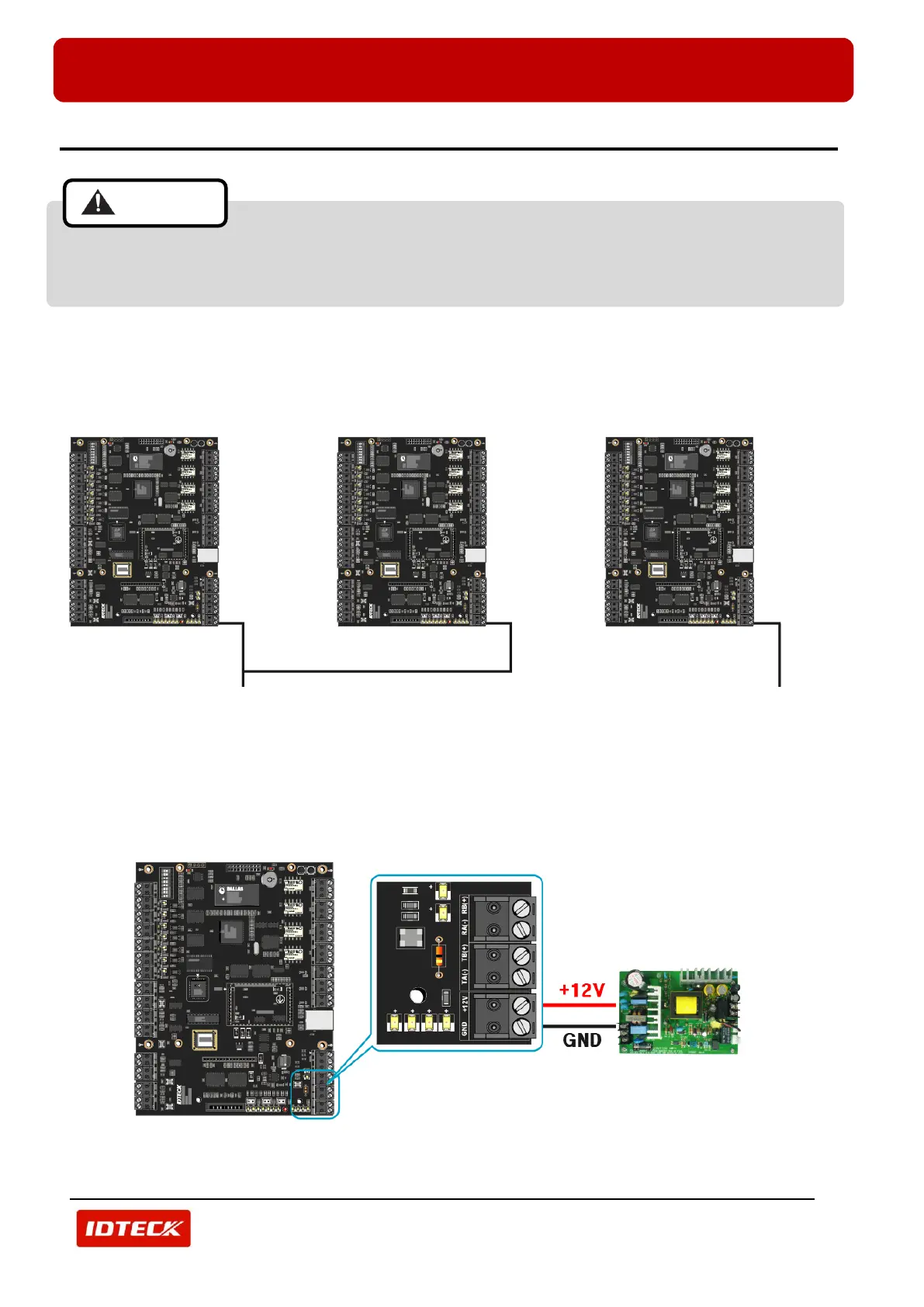- Connect +12V (red) wire of DC12V power supply to Power terminal block (+12V) of iTDC/iTDC-SR.