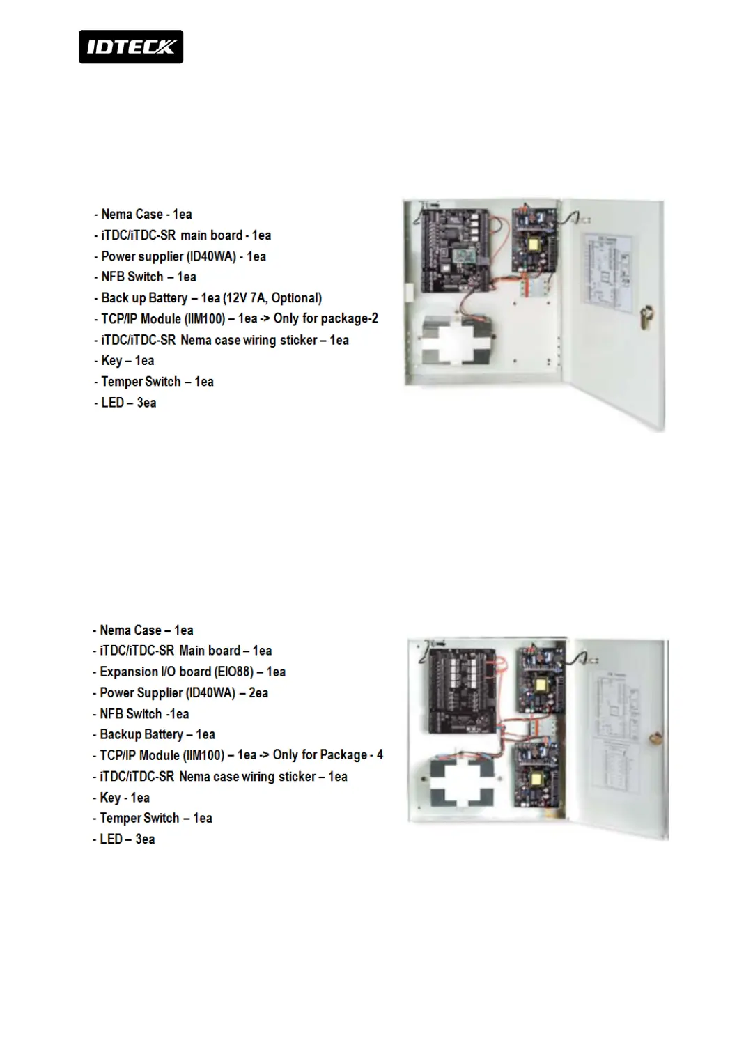 Supplied parts in iTDC/iTDC-SR package-1 and package-2 are basically same but TCP/IP