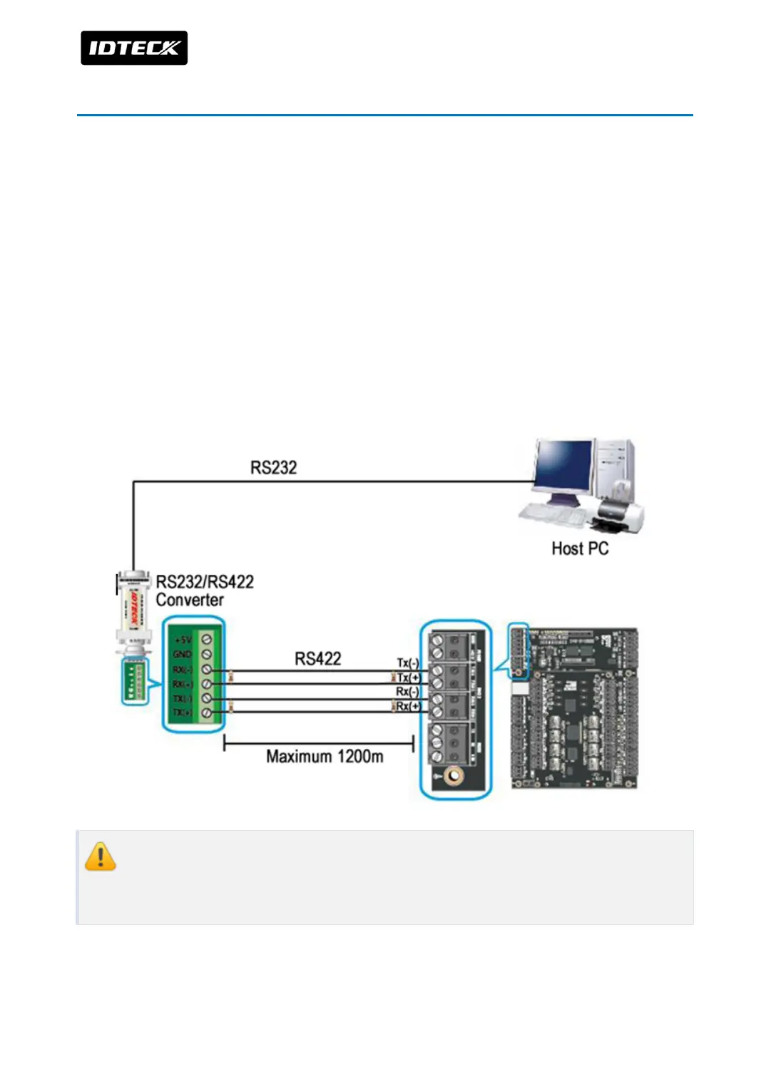 Connect RS422-TX(-) of the iTDC to RS422-RX(-) port of the converter.