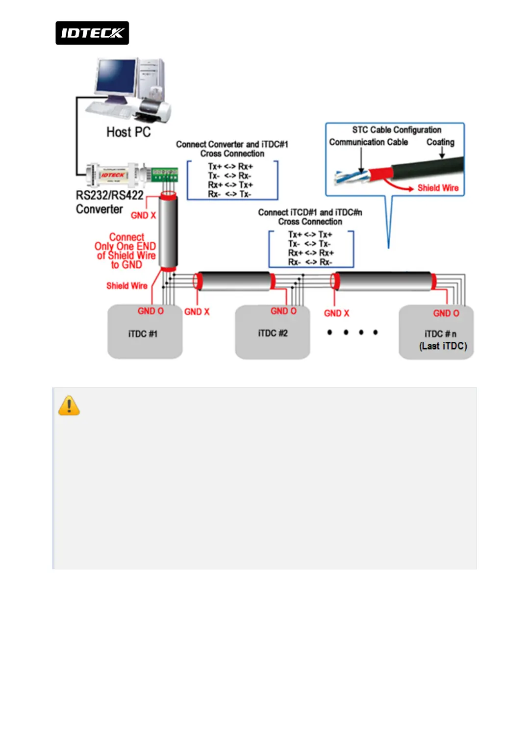 then it makes communication error. Only one end of shield wire has to be