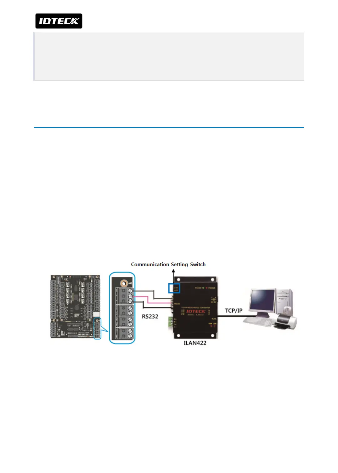 IDTECK iTDC-SR - External TCP;IP CONVERTER (ILAN422); Wiring for RS232 Communication; Wiring for RS422 Communication