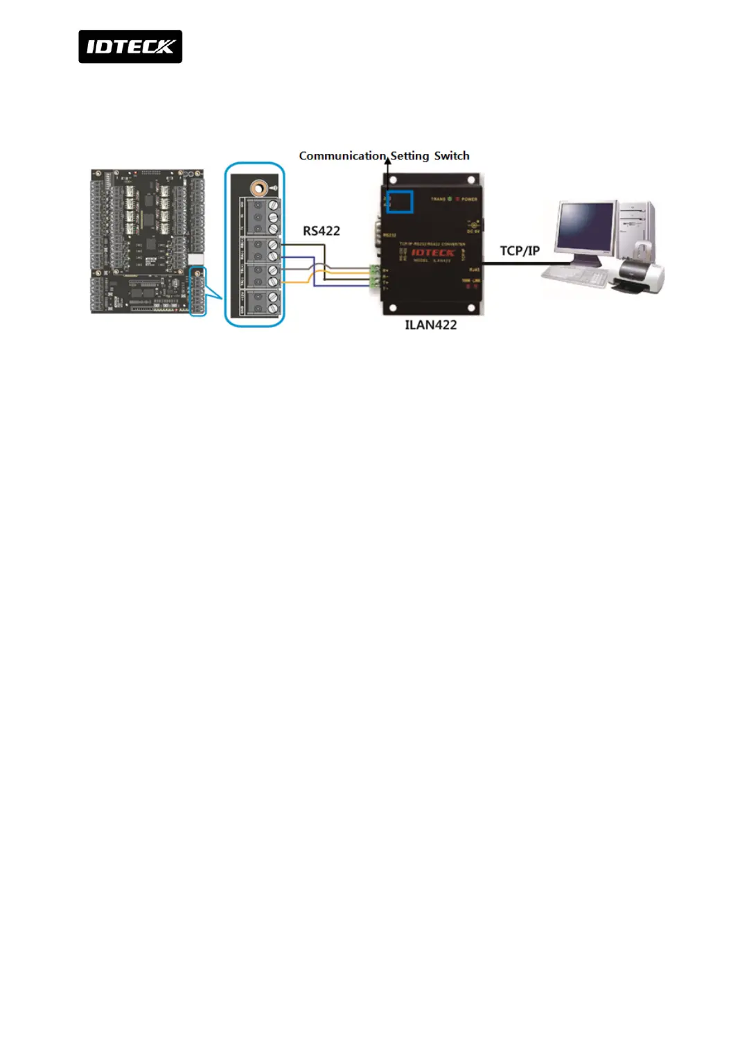 Connect RX+ of iTDC/iTDC-SR RS422 port to TX+ of ILAN422.