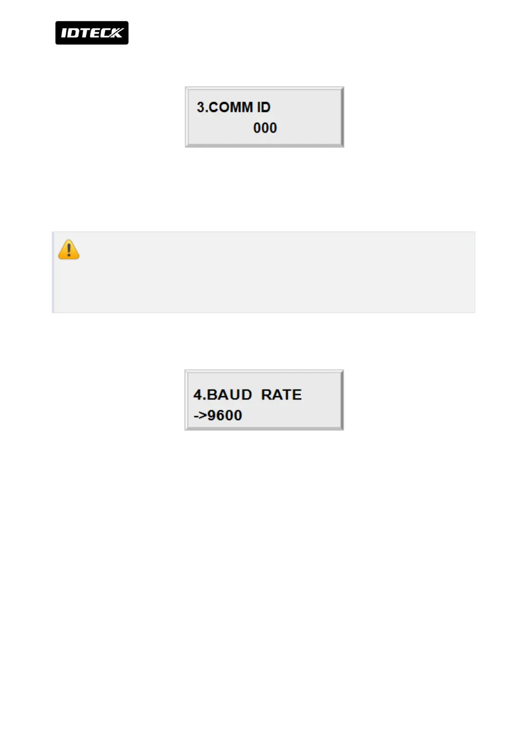 IDTECK iTDC-SR - Comm ID(Communication ID, Board ID) Display; Baud Rate Setting