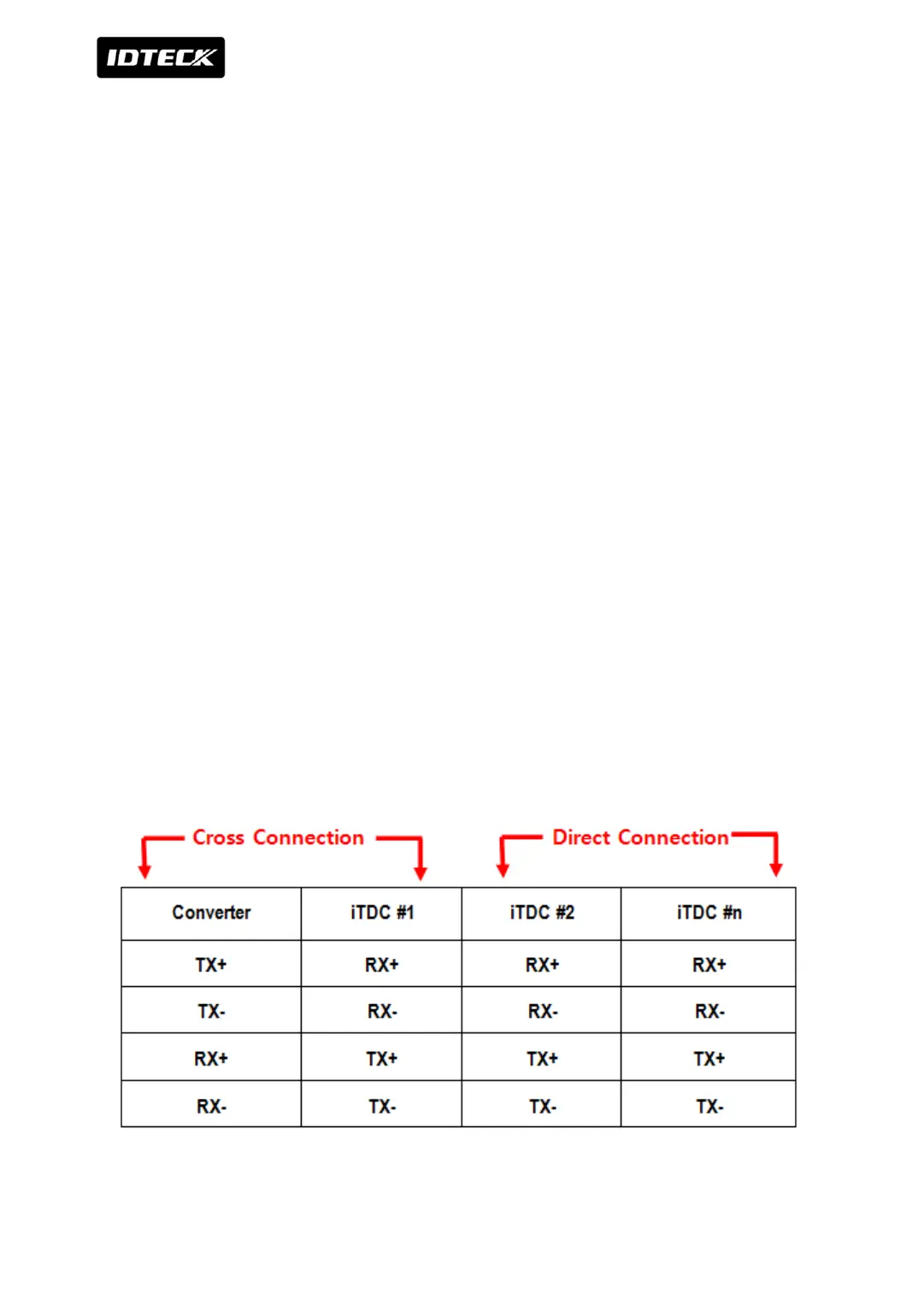 i. Connect RS422-TX(+) of one iTDC to RS422-TX(+) of another iTDC.