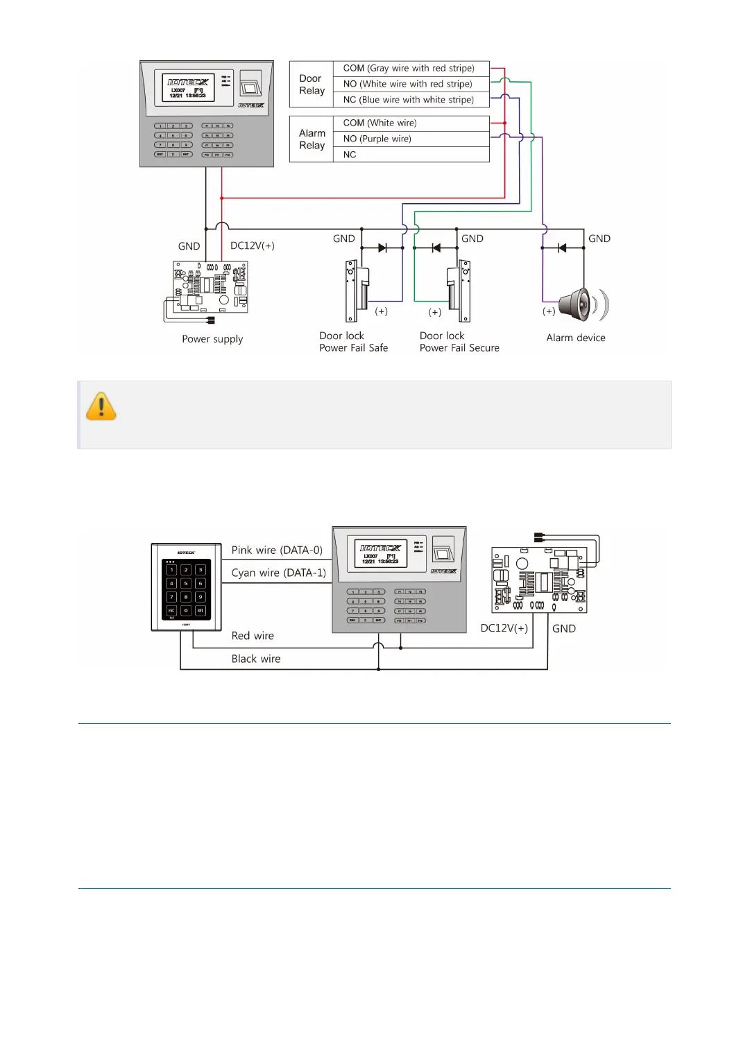 1. Connect (+) wire of the Proximity Reader to DC +12V.