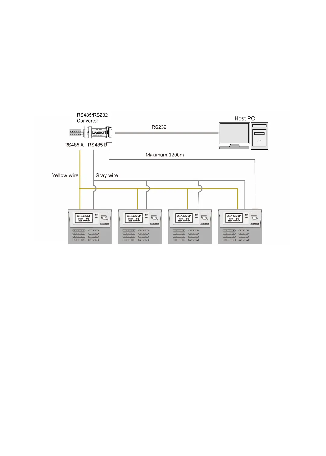 2. Second, connect one of the RS485 ports of the LX007 units to the RS485/RS232 conve
