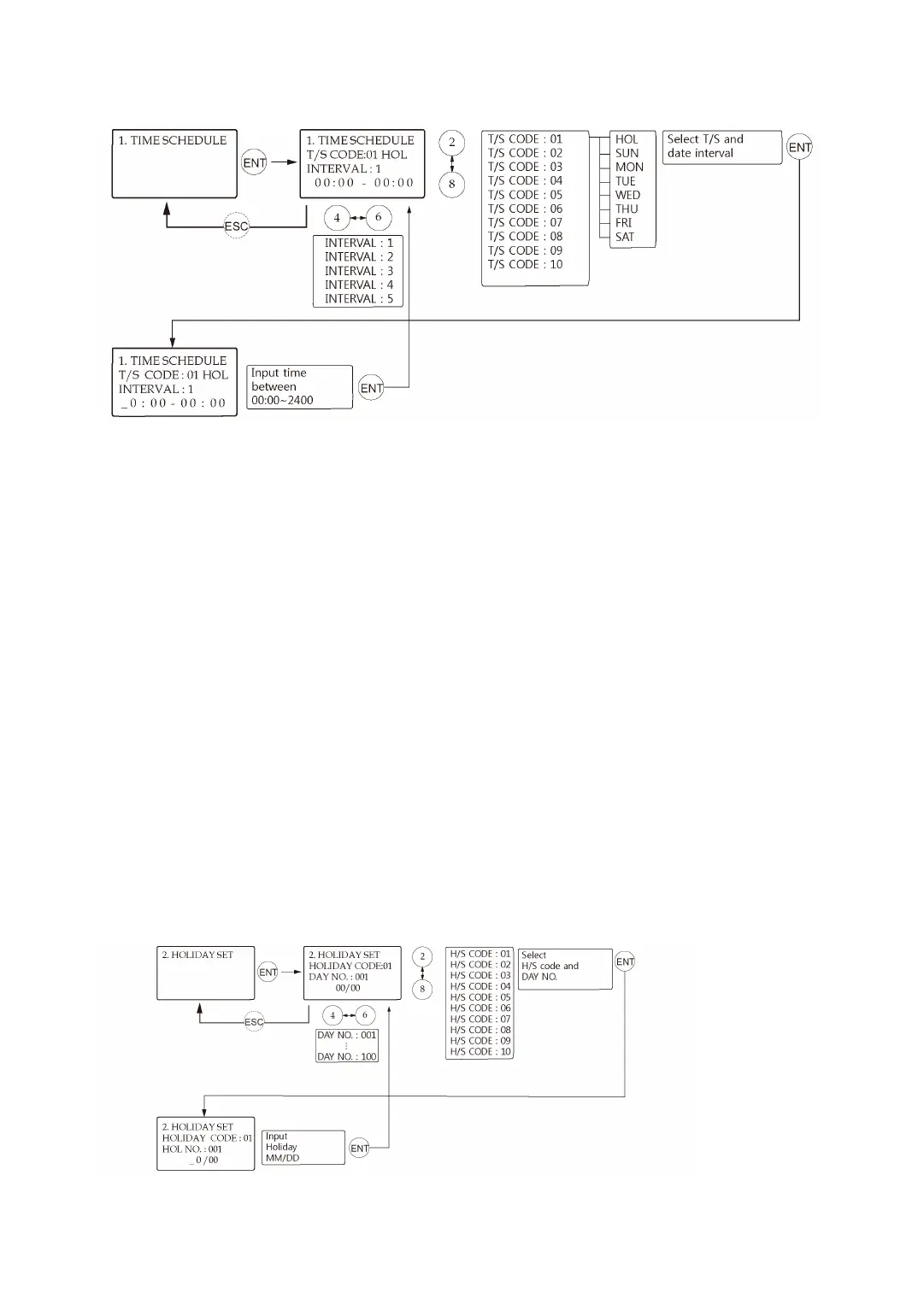 de. Select one of the Time Schedule Code, Day and Interval, and then press <ENT> key. This