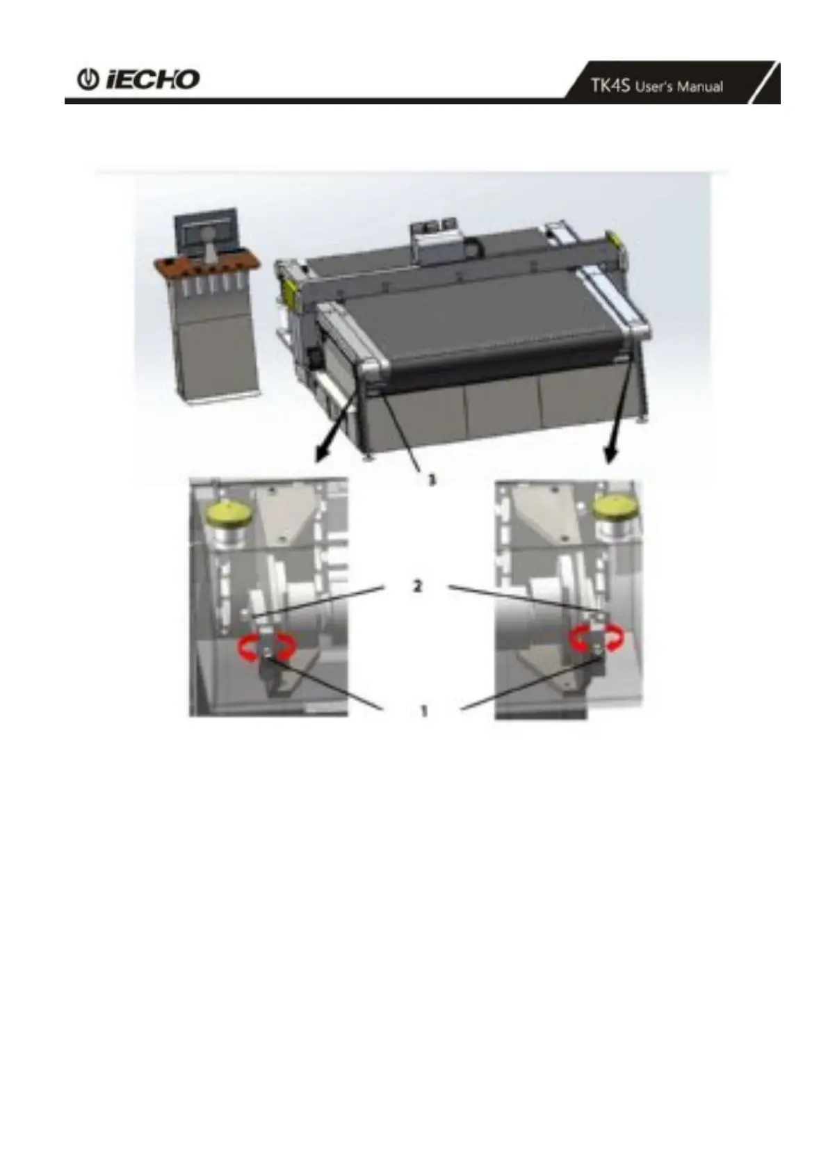 1 - 2 Adjusting screws (both sides) 3 Lower guide rollers (front and rear side)