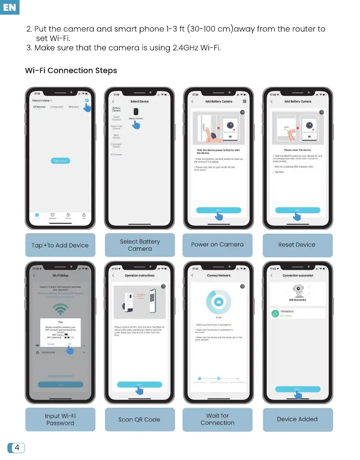 2.Putthe camera and smart phone 1-3ft (30-100 cm)away from the router to