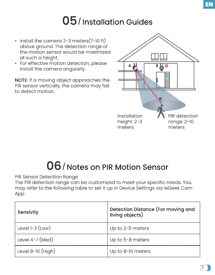 • Install the camera 2-3 meters(7-lO ft)