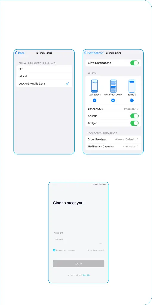 1. Allow “CloudEdge” or “ ieGeek Cam” to access mobile cellular