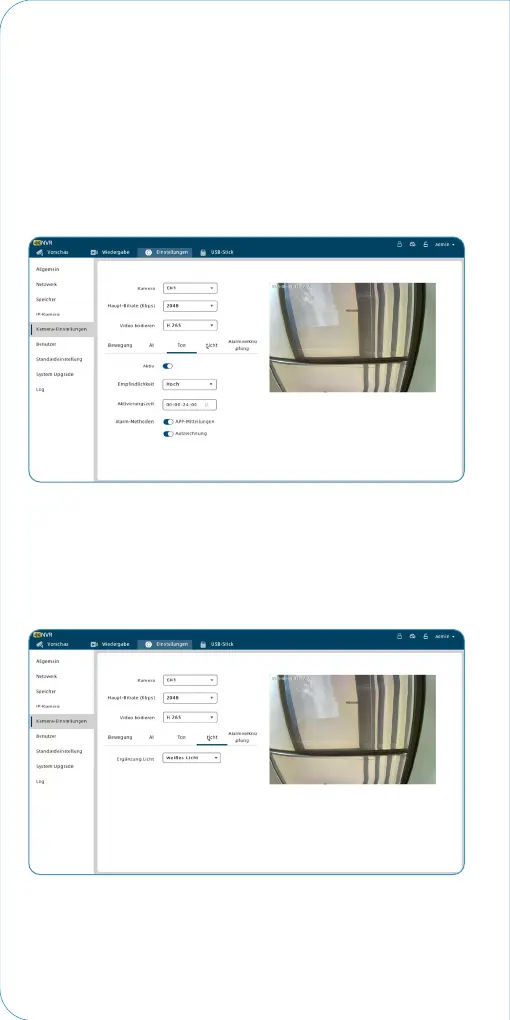 "Einstellungen“ > ‘Kanaleinstellungen“ > 'Geräuscherkennung“ >