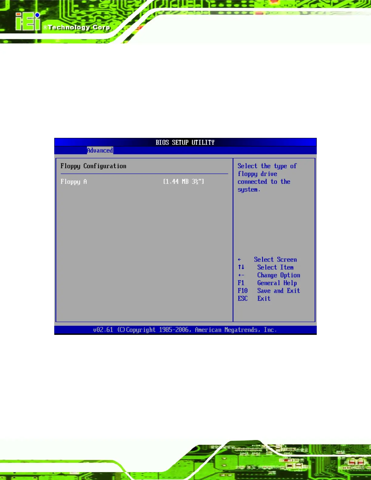 BIOS Menu 6: Floppy Configuration