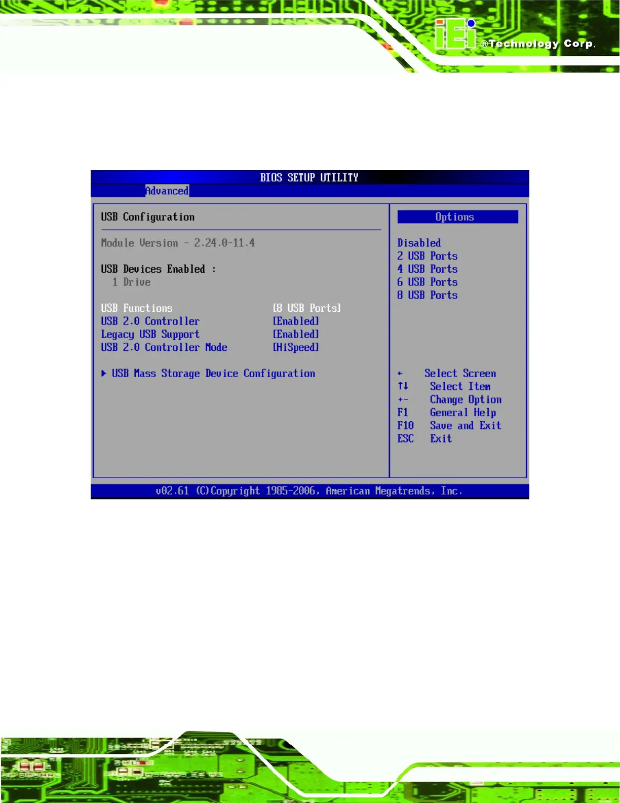 Use the USB Configuration menu (BIOS Menu 10) to read USB configuration