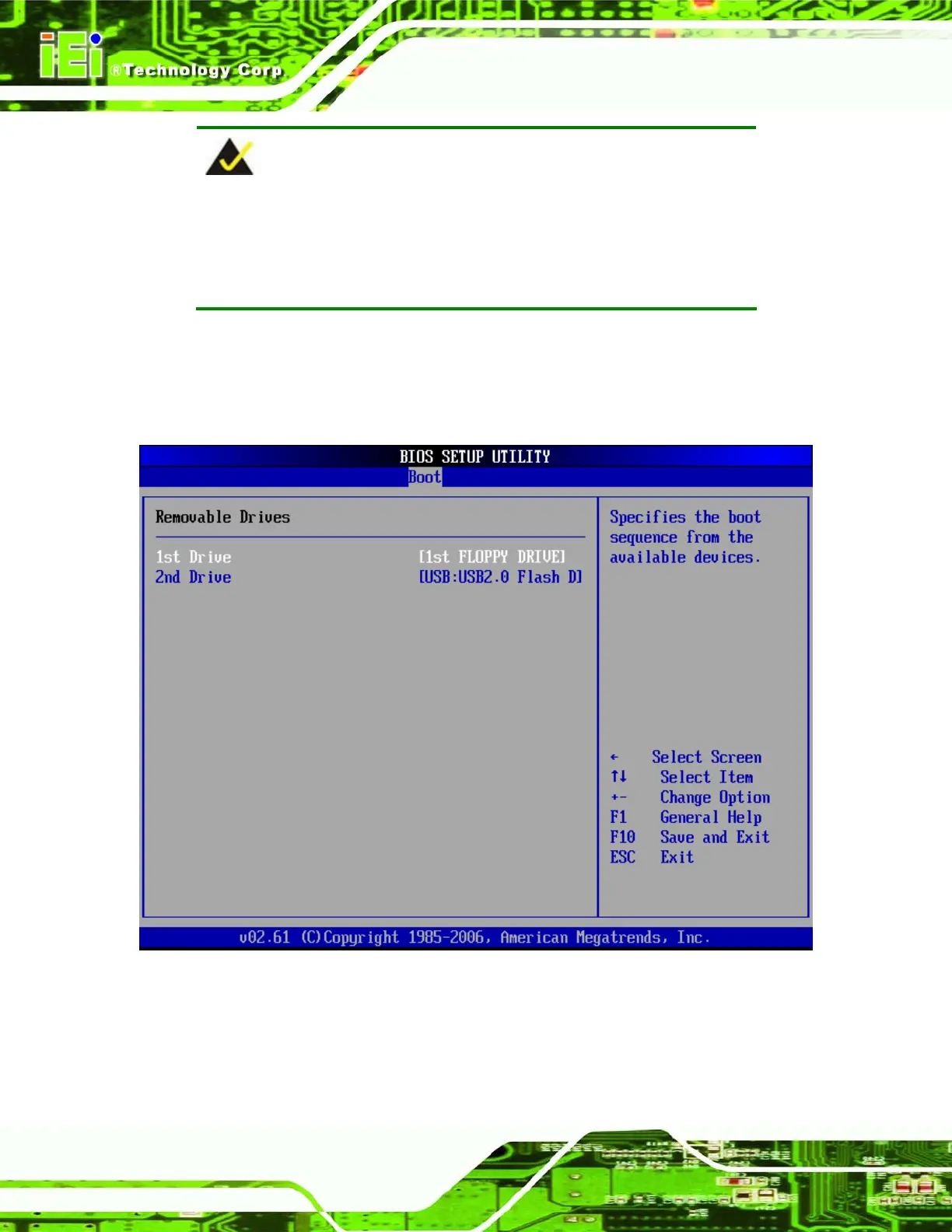 The boot sequence from the available devices is selected. If the “1st Drive” option is