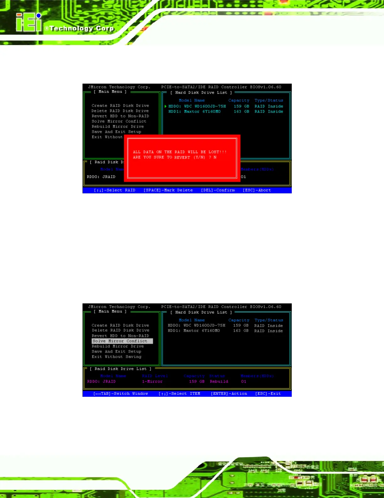 Step 3: Confirm reversion to non-RAID. Remember that all data will be lost. Press Y to