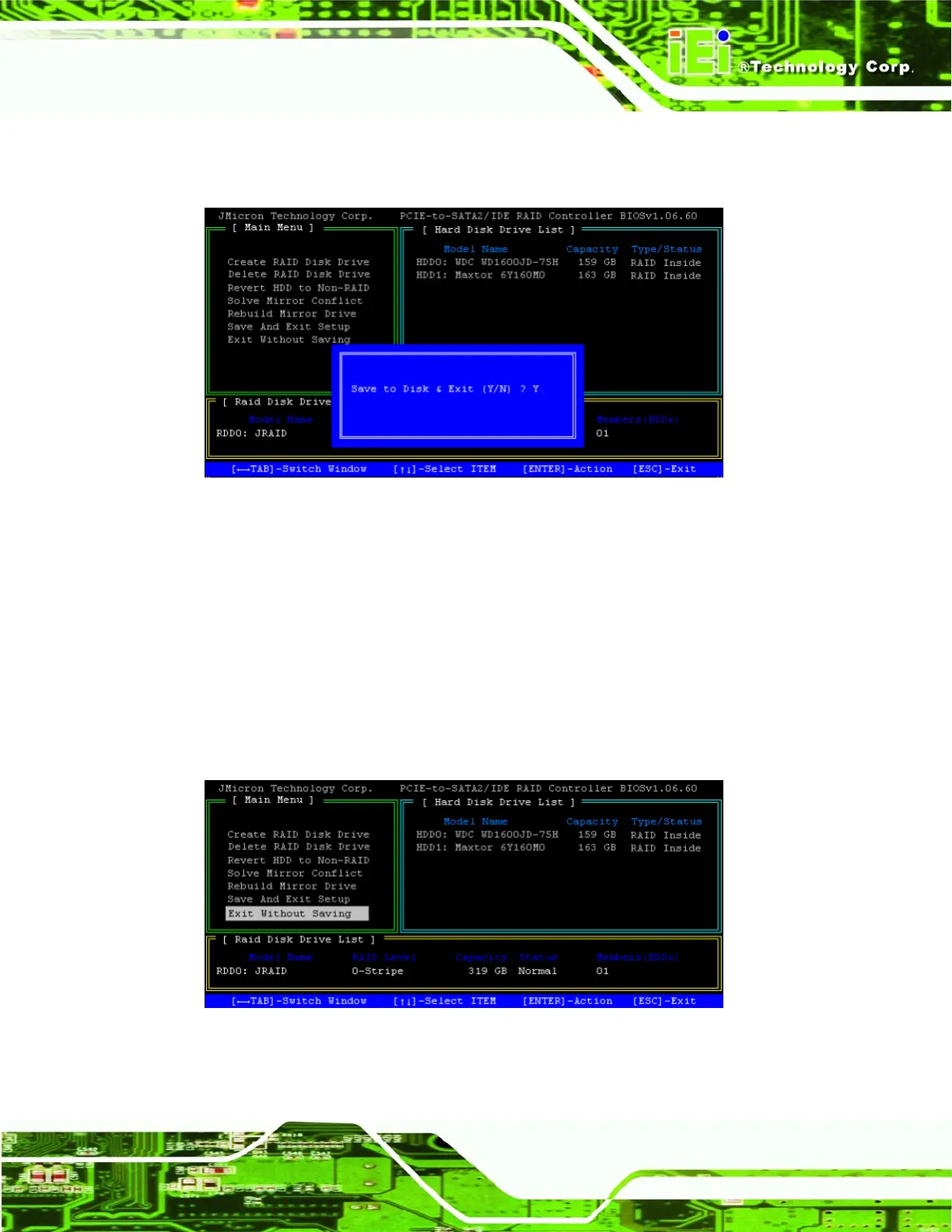 Step 1: Highlight the “Exit Without Saving” menu option and press ENTER.