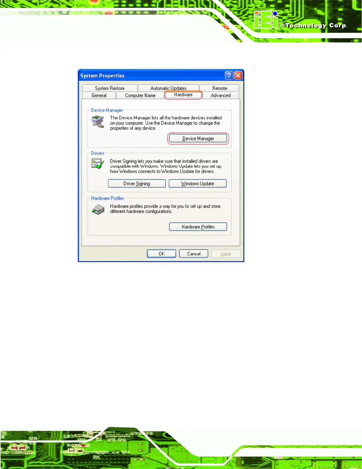 Step 3: Click the Device Manager button under the Hardware tab (Figure 8-18).