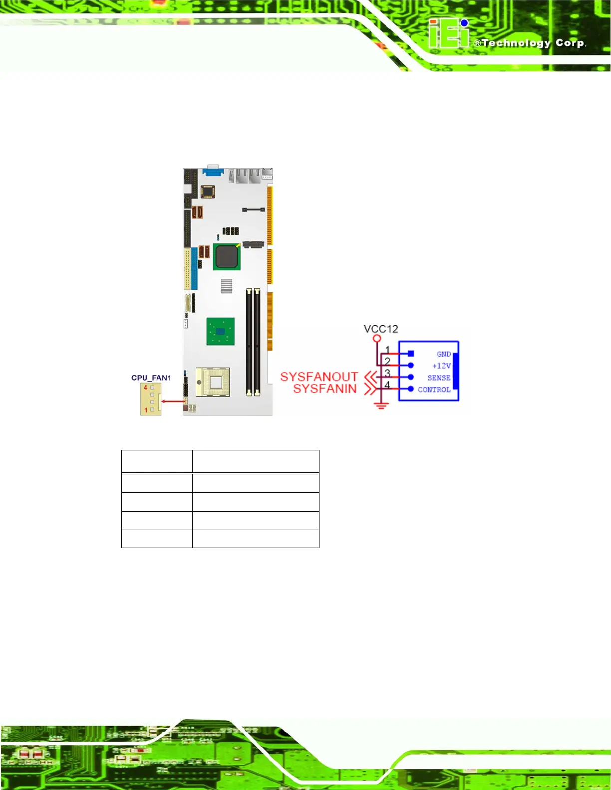 The cooling fan connector provides a 12 V, 500mA current to a CPU cooling fan. The