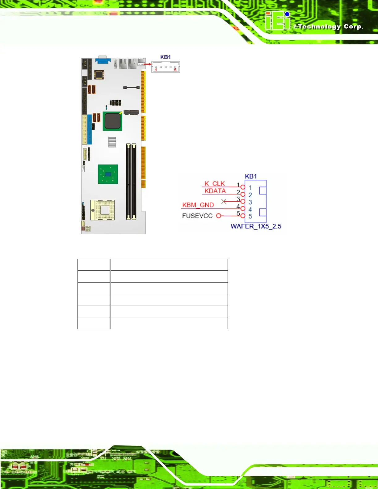 IEI Technology WSB-9152 - LVDS LCD Connector; Figure 4-12: Keyboard Connector Location; Table 4-13: Keyboard Connector Pinouts