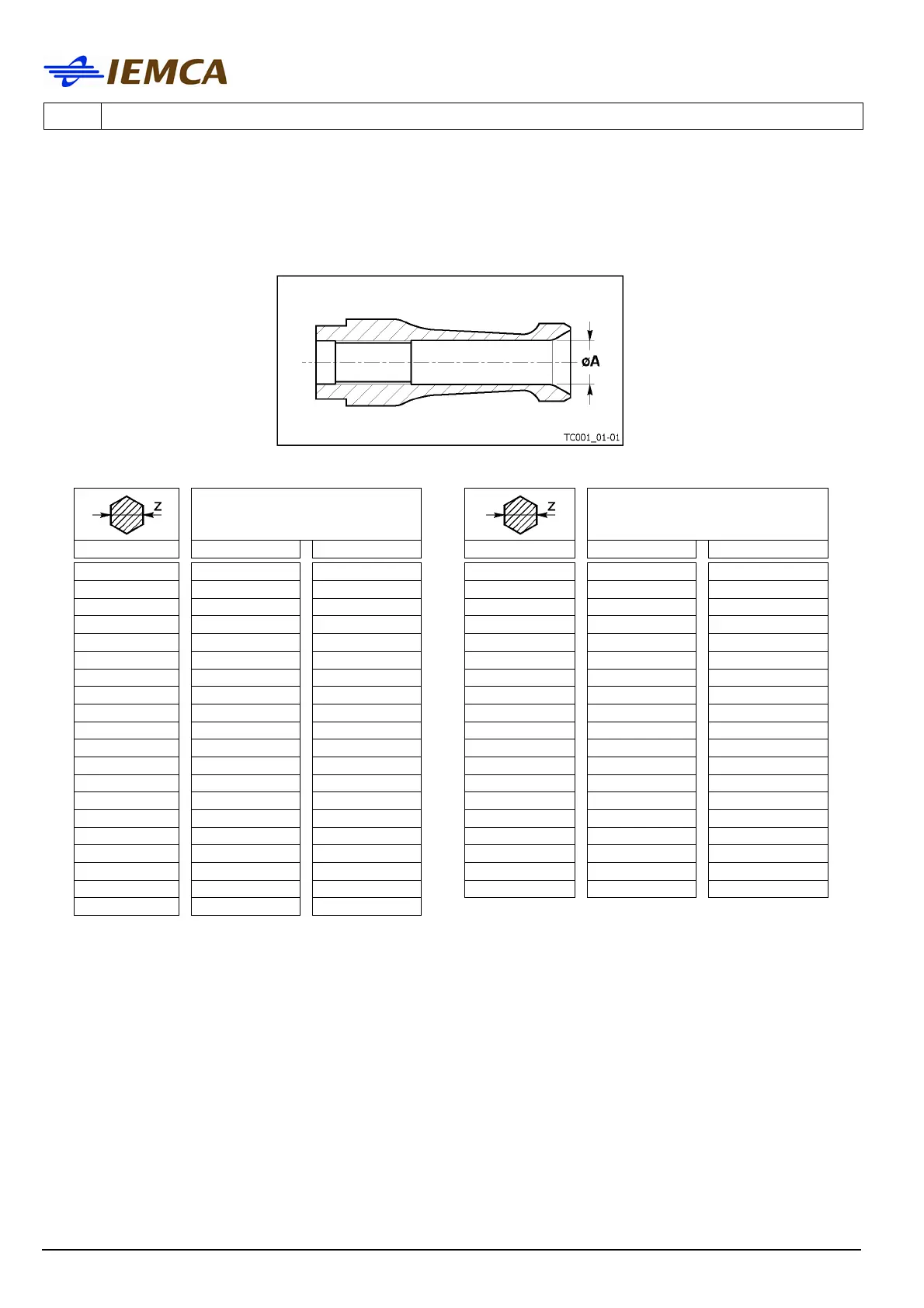 Before selecting the steel collet, define the internal diameter øA by referring to the table below.