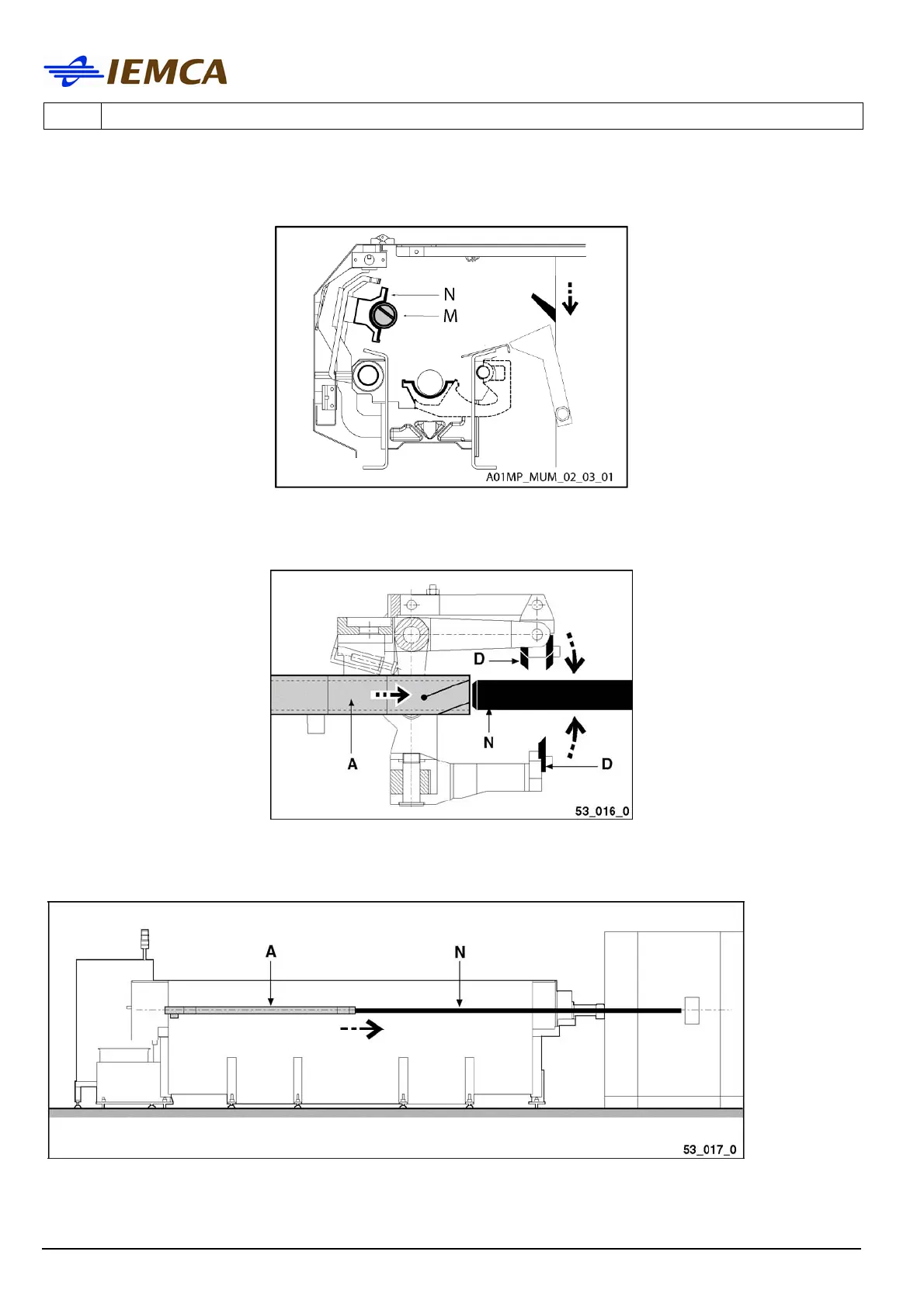 The clamps (D) close, the bar pusher (A) moves forwards; the bar (N) is inserted into the bar