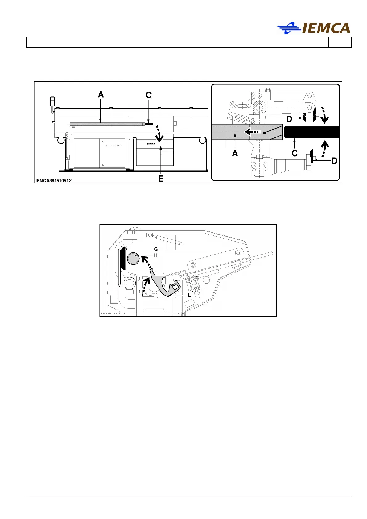 The top guides (G) are lifted together with the bar pusher (H), and also the bar control devices